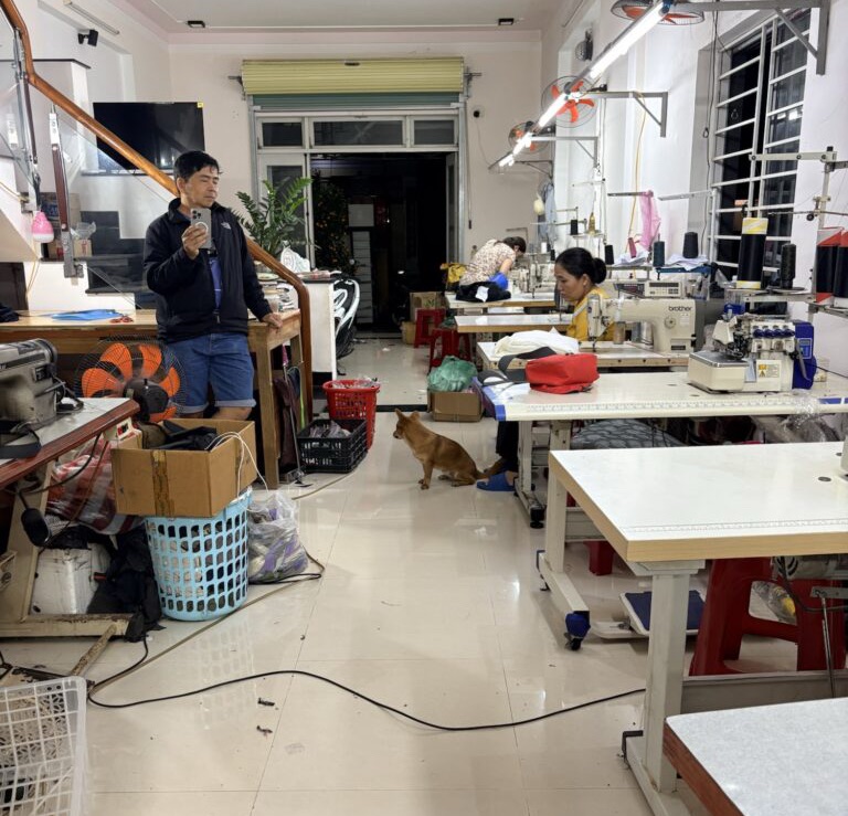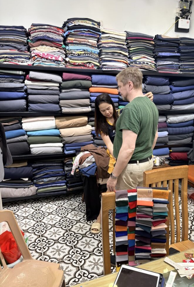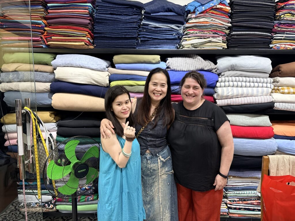 Tilbage til skrædder og ja hvorfor er det så vigtigt? Jo fordi mine bukser passede stadig ikke, så Thi tilbød at jeg kunne køre ud på “fabrikken” for at tilpasse dem derude. Det var jeg hurtig til at sige “ja” til, så op på en scooter med mig (rolig jeg kørte ikke, var Thi’s mand) og afsted med os, ca 6 min.