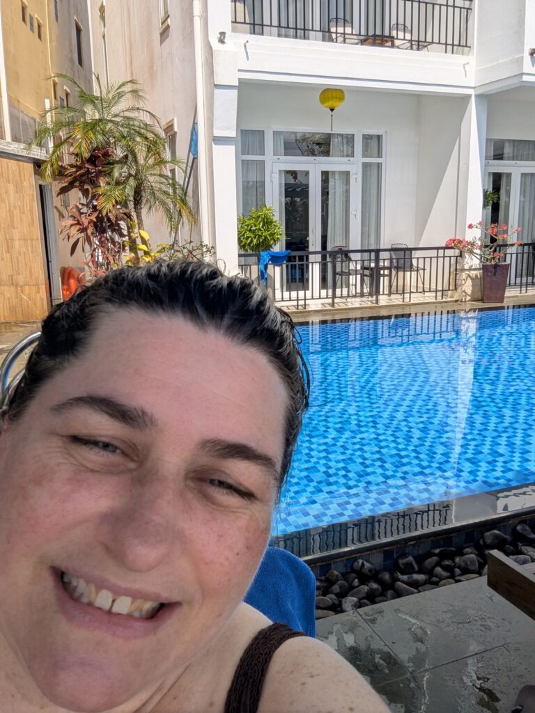 Ved poolen mødte vi et ældre australsk par meget søde. Hun havde arbejdet som sygeplejerske så selvfølgelig gik snakken meget på mit studie og hendes oplevelser. Spændende par, det var 8. gang de var på dette hotel.